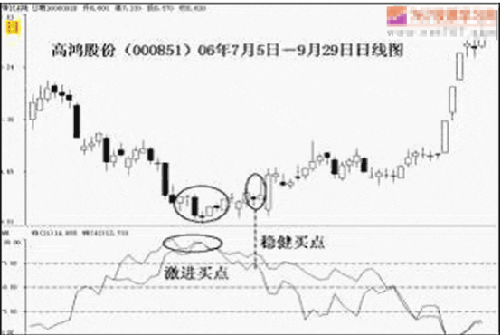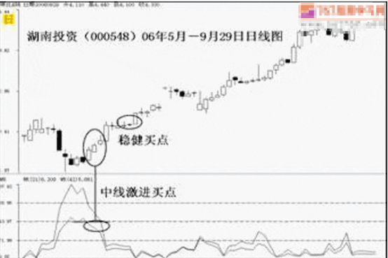当WR曲线从超卖区开始向上爬升,超过80这条买入线时,说明行情可能向上突破,是开始买入的信号。