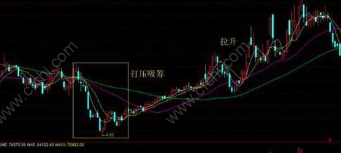 尾盘打压股价分两种情况。一是,尾盘打压股价线全天基本在均价线之上运行,收盘前向下突破均价线;二是,按当日的K线走势本应以阳线收盘,但是却在收盘前跌至阴线。