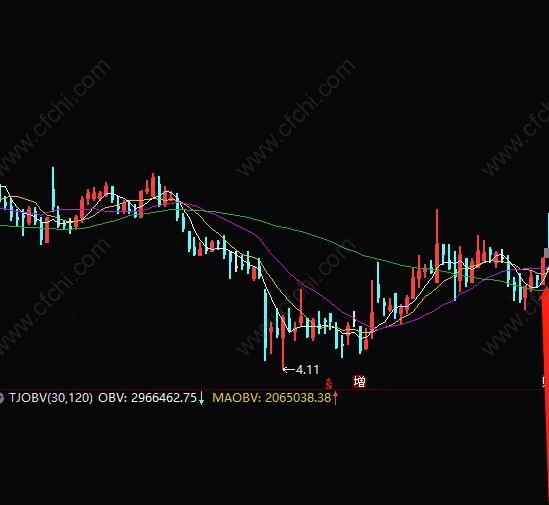 3、当股价上涨,OBV指标同步向上,反映在大盘或个股的信号就是一个价涨量增的看涨信号,表明市场的持仓兴趣在增加。反之,股价上涨,OBV指标同步呈向下或水平状态,实际上就是一个上涨动能不足的表象,表明市场的持仓兴趣没有多大变化,这样,大盘或个股的向上趋势都将难以维持。