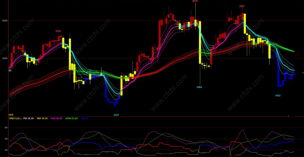 顾比线主要由2组均线组成。一组是短期均线,一组是长期均线。前者代表短期成本,后期代表长期成本。