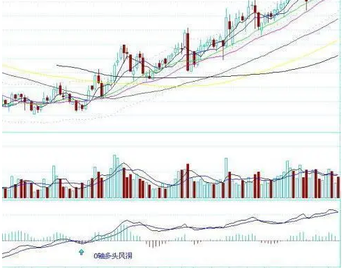 3.由于MACD指标比较滞后,所以蜡烛图会先一步MACD指标发出买入信号。