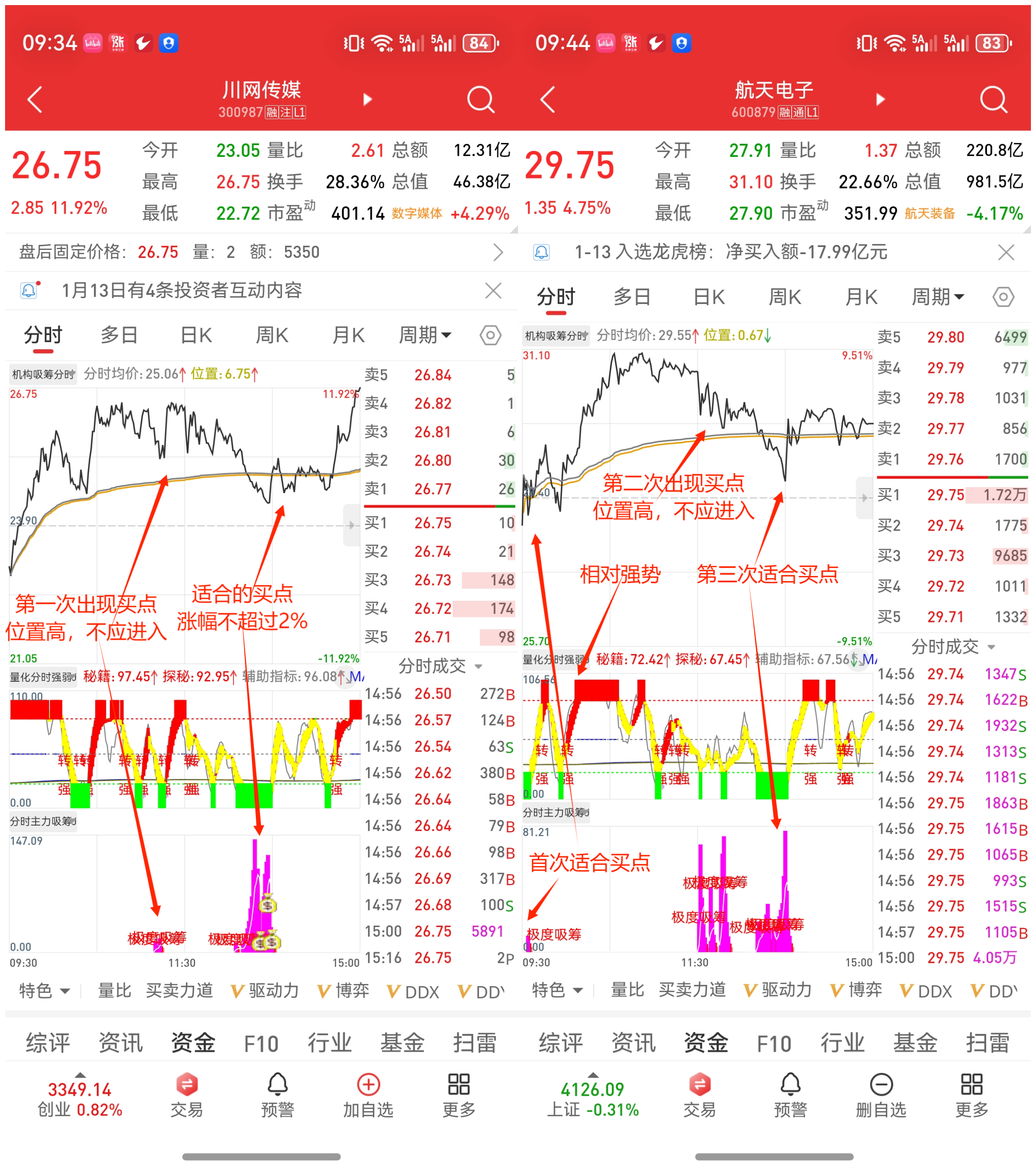 1.“量化分时强弱”相对强势,“分时主力吸筹”发出“极度吸筹”信号才是买入点,即使回落不至于大亏。