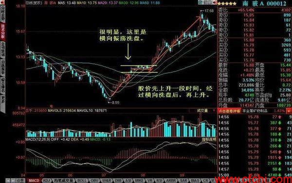 这种方式一般在优质股票或者热门题材股票中,因为主力一旦向下打压股价,很可能打压出去的股票变成肉包子打狗——有去无回的局面,因此只好通过以时间换空间的方式洗盘,进行横向振荡是此时最好的策略了。