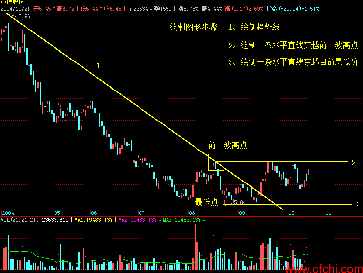 3、在下降趋势中,价格向上穿越先前的短期反弹高点;或在上升趋势中,价格向下穿越先前的短期回档低点。