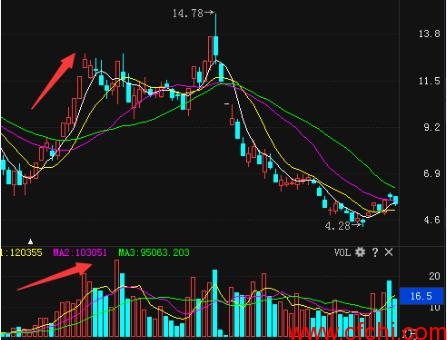 成交量萎缩往往意味着抛压在减弱,属于正常的价量配合关系。然而许多累计升幅巨大的个股主力机构就利用投资者的这种惯性思维,利用缩量阴跌的方式,缓慢出货,让高位套牢的投资者产生缩量不会深跌的麻痹思想,丧失警惕性,错过及时止损出局的较佳机会,一步步掉入深套的陷阱。