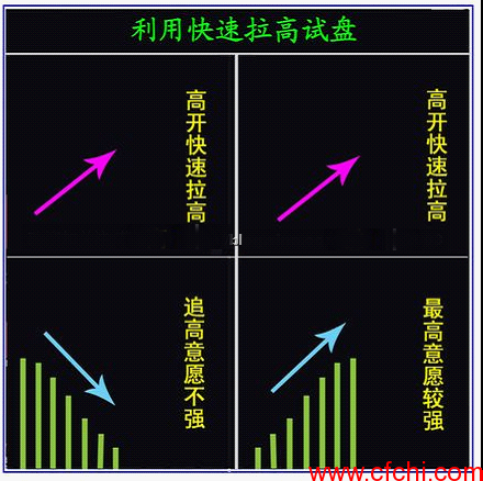 1)高开后快速拉高。开盘高开后,主力通过快速拉高股价的方式试盘,目的是判断盘中追高的意愿是否强烈。请看下图:
