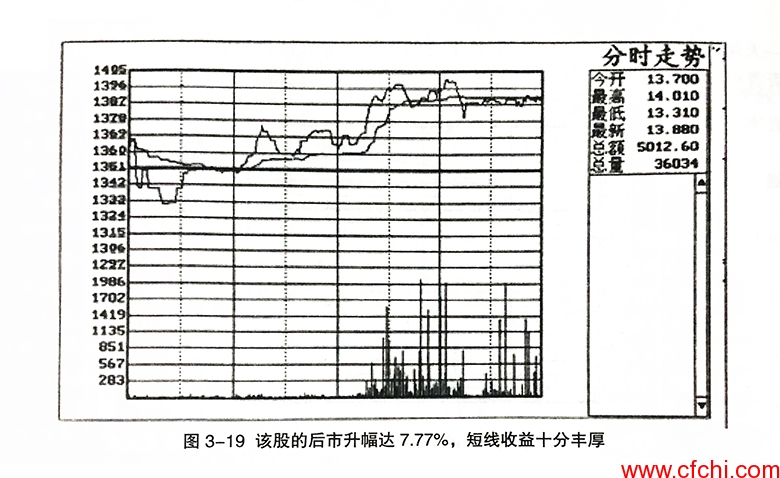 (2)这种形态只能应用于当天买进、第二天卖出的短线操作,投资者进行中长线选股时应参考其他的技术分析法。