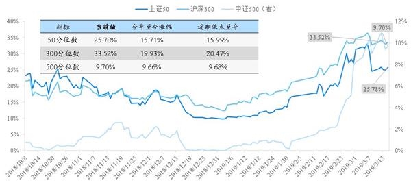 注:分位数计算以PE(TTM)为基础。上证50分位数历史起点为2004年1月2日;沪深300分位数历史起点为2005年4月8日;中证500分位数历史起点为2007年1月15日。