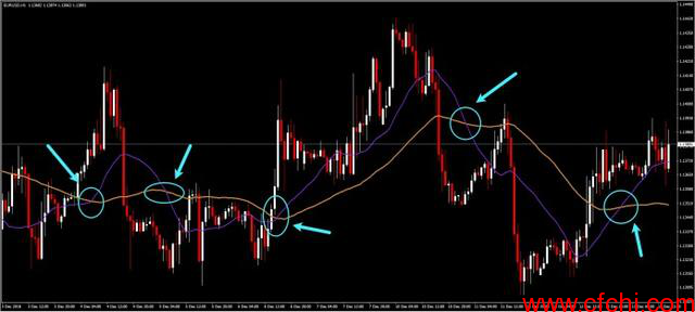 下面的图表说明了同样的两条移动平均线在5分钟的图表中可能不太适用。这些指标虽然适用于图表中间较大的变动,但显示出太多错误的交叉信号,可能导致损失。这很可能是因为频率太高而平均值无法达到适当的水平。基于此,应该记住,在决定交易之前,我们需要对移动平均线选择进行回测。因此,在第二部分中,我们将讨论短期移动平均线,并了解这些移动平均线如何用于其它频率。