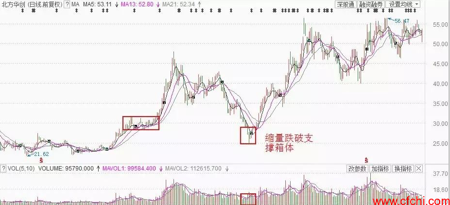 3)跌破箱体时是缩量而不是放大量,这说明主力不是出货,而是洗盘。