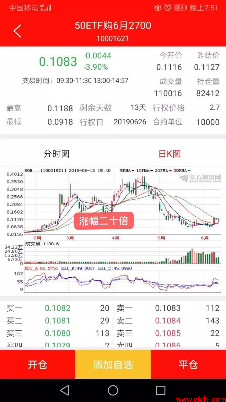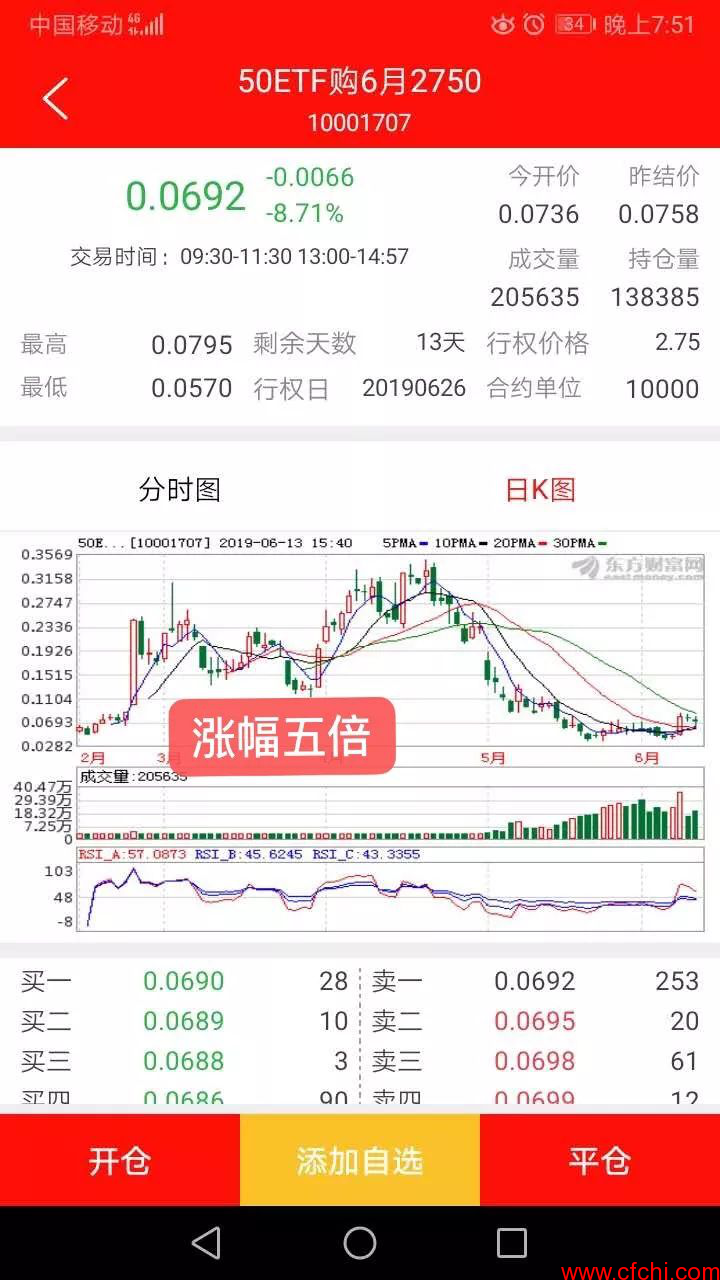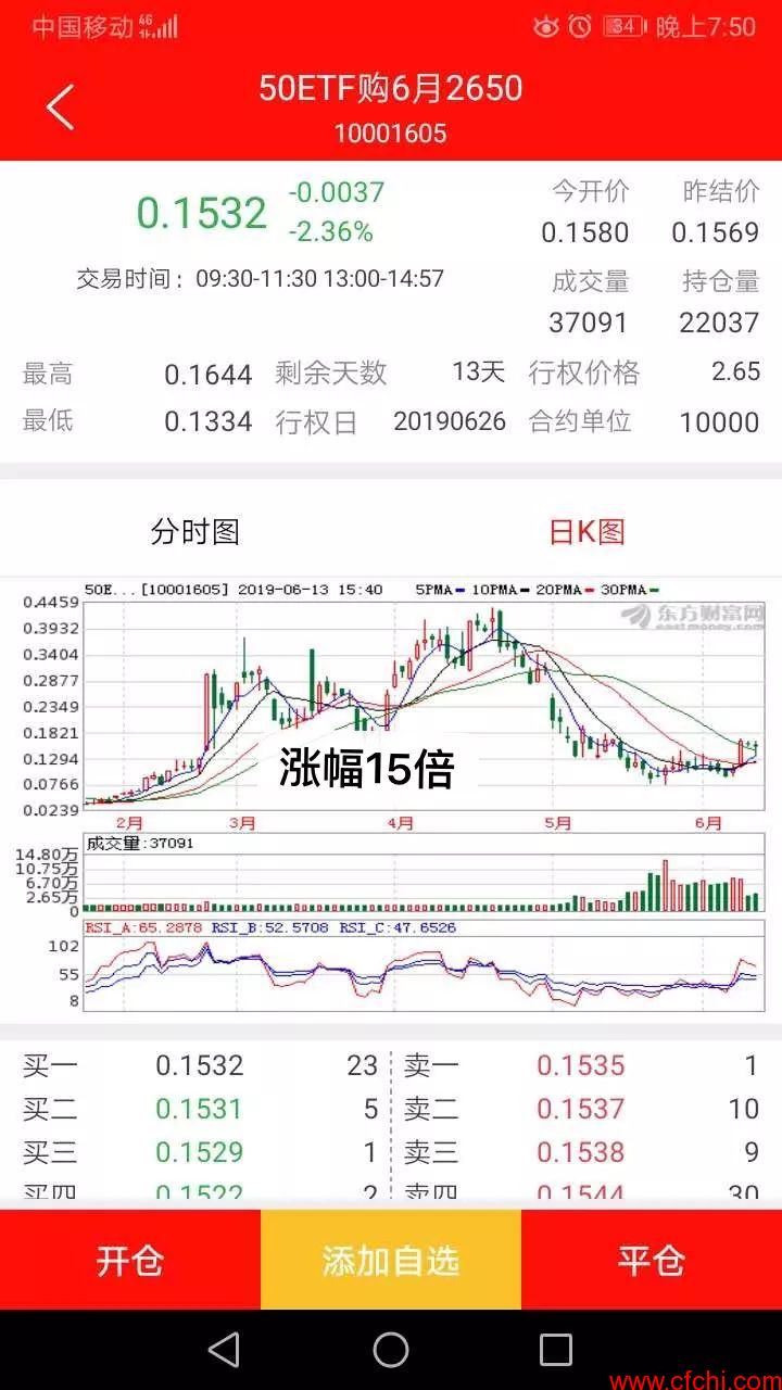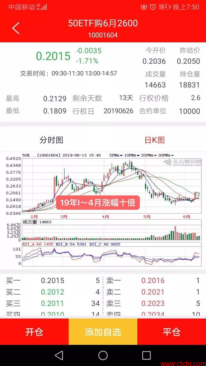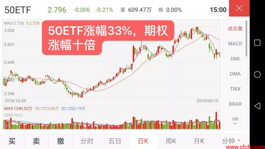 大家看一下上证50指数只要出现几次3%以上大阳线或者是大阴线的机会,作期权的朋友在当天就能赚1~3倍左右的利润、由于6月11日上证50及50ETF大涨将近2.7%、期权市场上很多作认购当天就赚了50~100%,大家可以把今年1~4月份的期权K线图和上证50指数的走势图对比一下、期权出现了多少个涨停幅10~20倍的机会就明白了,所以在目前我们在用小资金去练习、目的就是要备战下一次十倍利润的大机会,所以机会总是留给有准备的人。