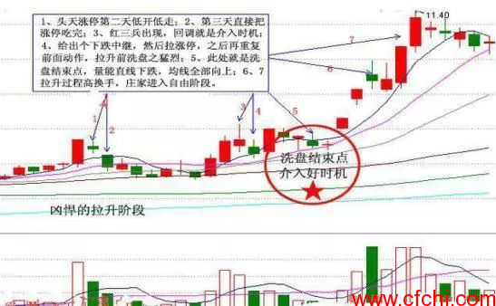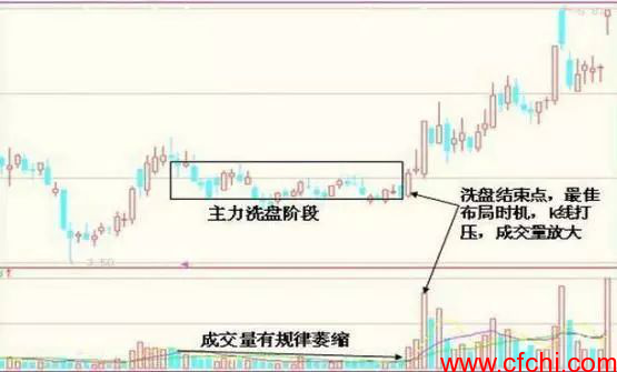 3、在洗盘结束时,成交量突然放大,并且k线相对于之前的小阳、小阴而言,会出现明显变化,最少是中线线或者大阳线,如果出现这样的情况,朋友们就要重点关注了,很有可能是主力洗盘结束,主升浪即将启动前兆