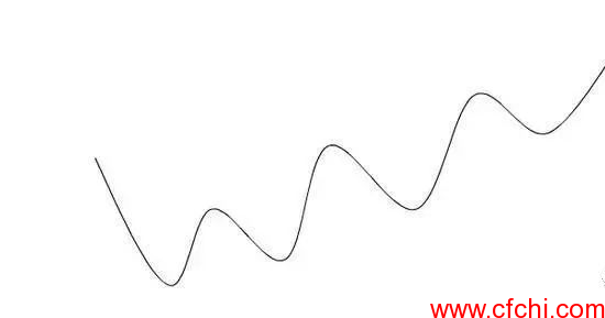 1、上升趋势,在某一周期内,市场价格不断突破前一浪的高点,创出新高,在回调过程中却不跌破前一浪的低点的过程,就是上升趋势。高点与低点都不断抬高如图: