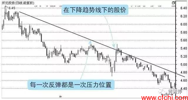 ③:对下降趋势线的判断还需要结合股票前期走势。