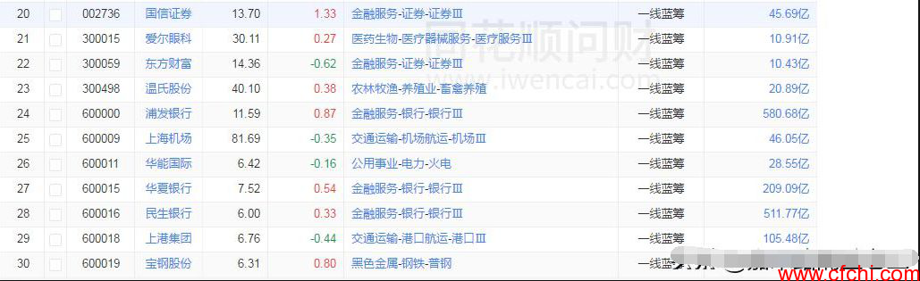 30支一线蓝筹股名单