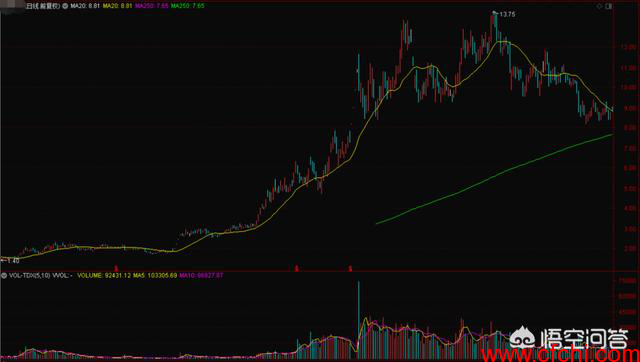 第一,从历史价格来判断。下图是今年的大牛股,底部起来至最高价的涨幅高达10倍。回溯此股的历史,新上市那会,被炒到40块左右,之后很多年来都没有见过这个价位了,而此次上涨最高涨至41块,比历史最高价高一点点,随后股价见顶回落。10倍的涨幅严重透支了未来的业绩,或许压根就没有业绩,纯粹靠游资接力炒作起来的,一旦游资结束接力,再一次历史大顶在疯狂中落下了帷幕。