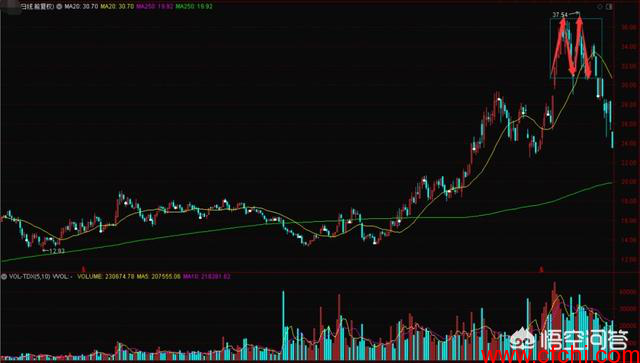 高位的顶部形态要高度注意。个股的顶部形态包括多重顶、头肩顶、倒V顶等。标准的形态很少会出现,真实的市场环境太复杂了,但是,高位的顶部形态不得不妨,就像下图中的个股,构筑了M顶结构,随后出现快速下跌,这个M顶不一定就是历史大顶,但起码会有几个月时间的整理。