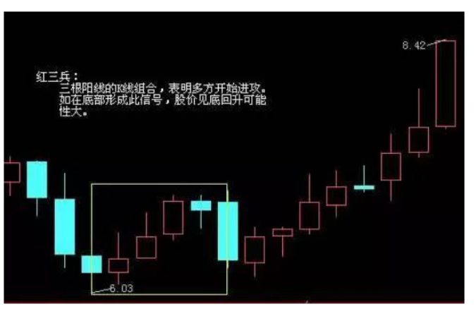 四是红三兵K线是由三根阳线组成的,并且每天的收盘价都是要高于前一天交易日的收盘价。