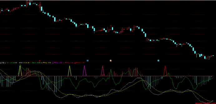5. 当DEA和DIF指标 均为负值,即都在零轴线以下时,大势属空头市场,DIFF 向下跌破 DEA,可作卖出信号。