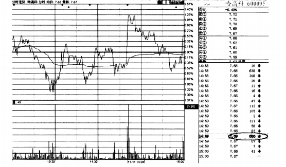 (5)判断急涨急跌的真实性和有效性非常重要。假的急涨急跌是主力的反技术操作行;而真的急涨急跌是盘中新一轮涨跌的起点,往往是盘中短线的极佳交易点。