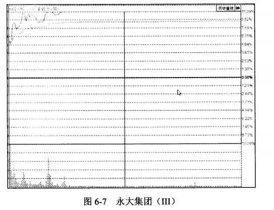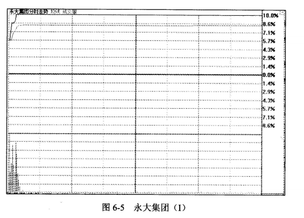 图6-5是永大集团在2015年3月18日的分时走势图。图中出现一个高开后的快速拉升封涨停的走势。跳空高开是股价强势的表现,投资者愿意以更高的价格买入,以致在一定的价位上不存在成交量的情况。