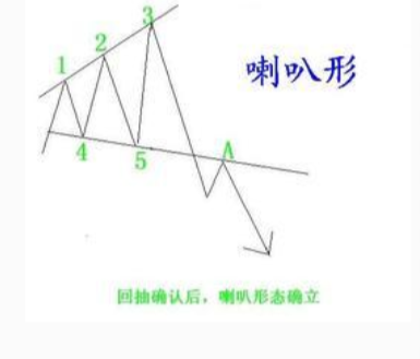 这形态说明大跌市来临前的先兆,因此,喇叭形可说是一个下跌形态,暗示升幅将到尽头,可是形态却没有明确指出跌市出现的时间。