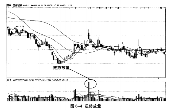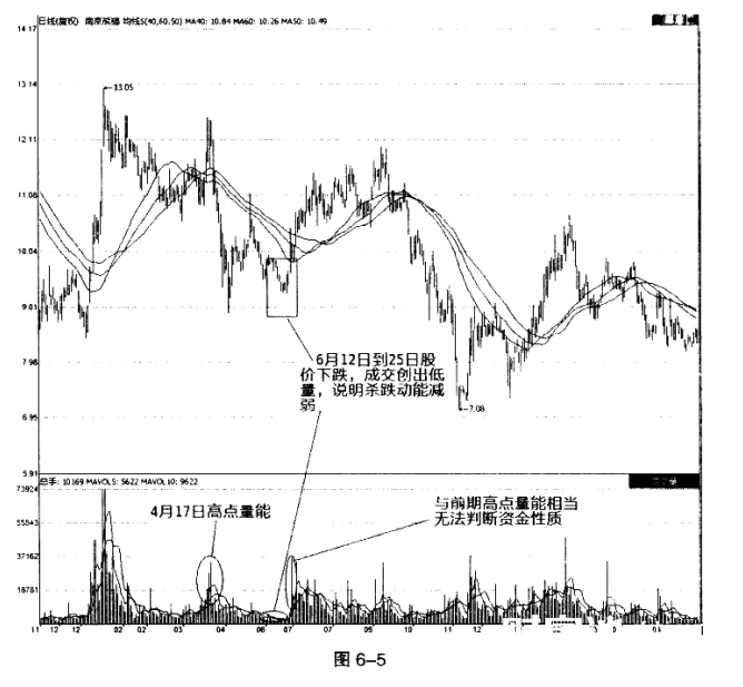 图6-5、图6-6为南京熊猫( 600775 )在2003年3月下旬~8月下旬的一段日K线走势图。该股在2003年6月12日~6月25日期间,股价出现了下跌,与此同时成交量也不断创出新的低量,说明该股的杀跌动能已经到达了极限,随后股价也便止跌企稳,该股于6月26日、27两口收出两根小阳线,同时伴随着成交址的温和放大。