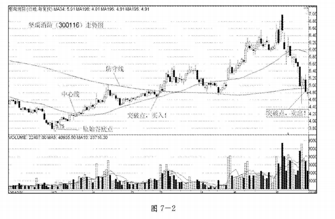 采取长周期线进,短周期线出的方法。换句话理解:从低成本线买进,高成本线卖出。股价在突破中心线或者防守线后的上涨途中,跌破5日、10日均价线或者攻击线时,坚决止赢卖。