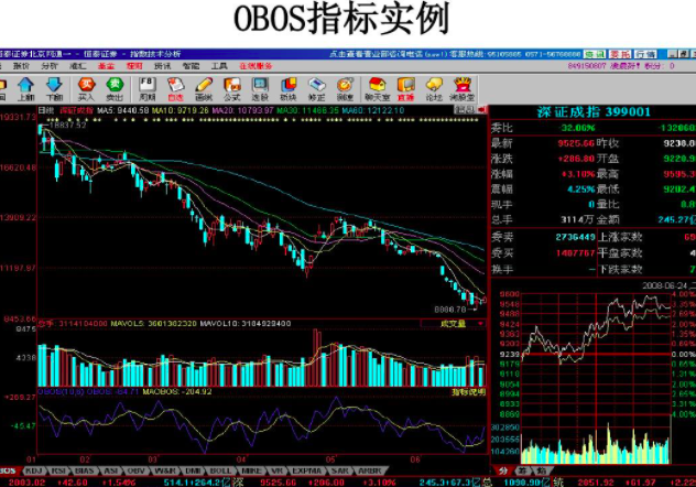(5) OBOS可用趋势线原理进行研制,当OBOS突破其趋势线时,应提防大势随时反转。