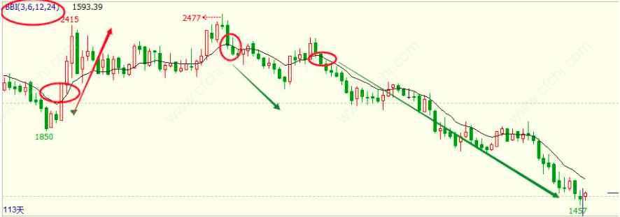 多空指标(BBI) 相较各种股市多空判断方法来说,尤其是在中长期走势中,判断更为有效。很多投资者喜欢使用移动平均线来判断股票多空,在设定不同周期的移动平均线找寻多空转换信号,常会出现不能够有效解决不同周期移动平均线相互协调的缺陷,而多空指标则没有此种缺陷。
