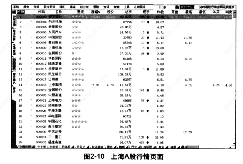 步骤1:打开“同花顺”软件,进入上海A股行情页面,如图2-10所示。