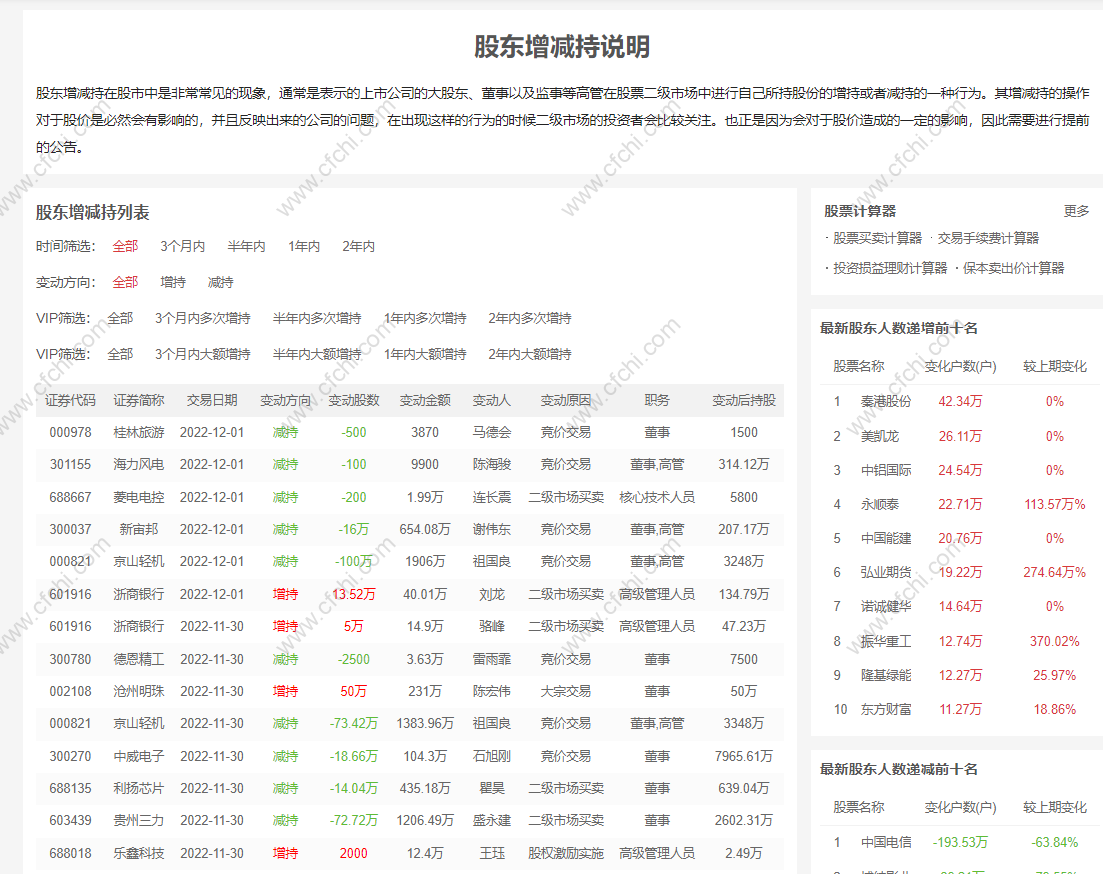 通过爱金股网我们就可以快速找到关于,股东增减持的股票数据了。