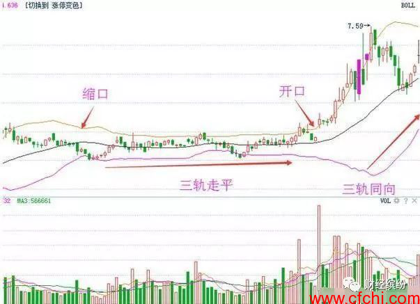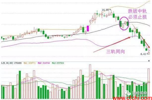 缩口后,中轨成为有效支撑的时候,会出现三轨同向的时候,这种状态下也是市场表现比较强劲的时候,此时中轨可作为有效止损的位置。