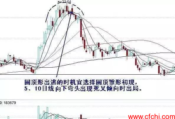 4、圆顶形成过程中5、10日线高位死叉止损出局