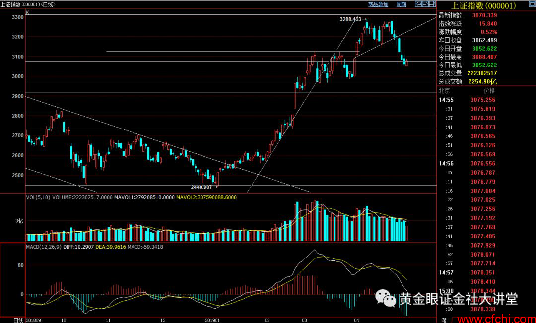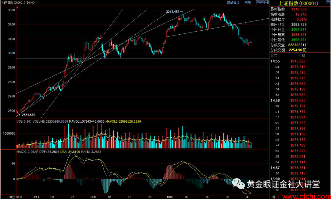 本周假期最后一个交易日,低开高走缩量反弹阳,止步于6连阴主力还算仁慈红盘迎五一,走势符合周一收评预判企稳弱反,沪指收3078,涨15点,成交2255亿元是缩量反弹走势。