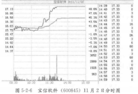如图5-2-6,该股当日如收涨停,成交4.08万手,成交金额6761万元。宝信软件主要从事钢铁行业的过程自动化和企业信息化提供软件、解决方案和系统集成服务等,是国内钢铁行业自动化与信息化全面解决方案的第一供应商, 在该行业处于领先地位,是典型的龙头股。在国家即将大力推动钢铁企业建立能源管理系统的大背景下,市场空间巨大。