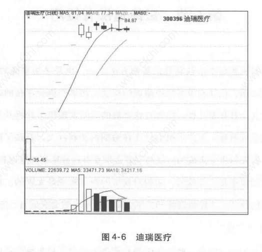 (1)新股机会。如迪瑞医疗上市首日,开盘价35.45元,符合国内目前炒作的医疗板块题材,截至2014年9月29日,股价为80.44元。投资者如果抓住了这次机会比很多人一年的收益还高(图4-6)。