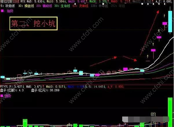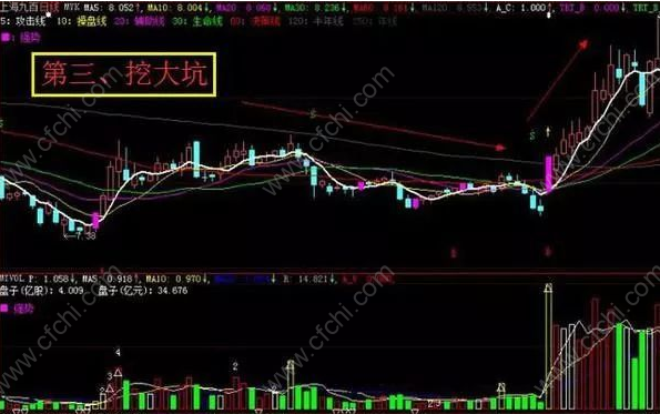 第三种,形态可以比喻为踩弹簧,为主力连续打压吸筹,最后一跌快速洗盘,其后迅速拉高,脱离主力成本区,形成主升浪。