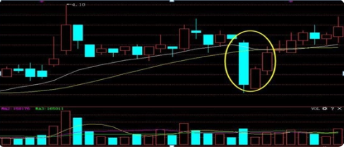 二、股价连续下跌,空方全力打压,在低档收出中大阴线,由于短线下跌过快,空方战线拉得太长,补给不济,终于遭到多方拼死抵抗,稍低开盘后即反转向上,以接近当日最高价收盘,一根阳线将前一日的阴线完全包住。