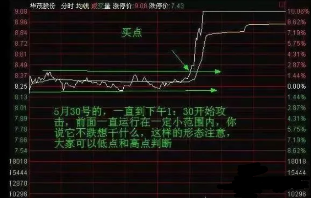 4、买点:当股价探底回升后,高于开盘价是第一买点,涨停介入是第二买点,当天没有涨停的应到收盘时再买。