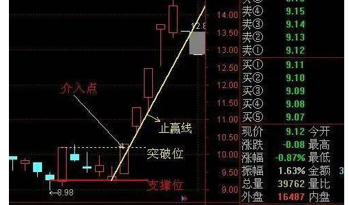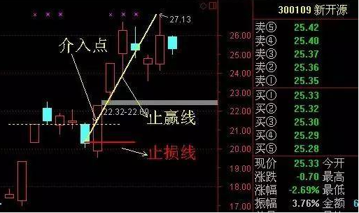 在低位如果产生了涨停阳线,第二根阳线有6%以上的涨幅,第三天回调时,选择昨日均价附近进行追赶,再按照成交量级别定夺持股时间。