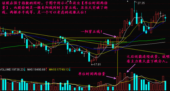 1、如果我们看到股价经历一段下坡路后,并且出现底部温和放量的情况,之后又出现了巨大的成交量并伴有短阴线或小阳线,一般都预示着追涨的时机到了。