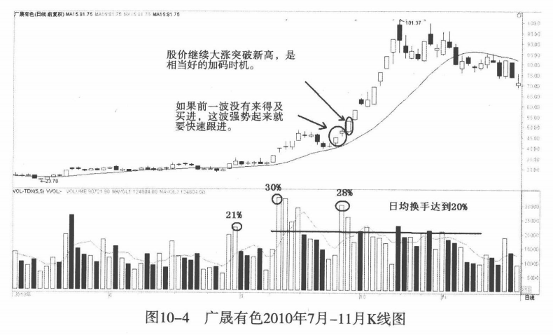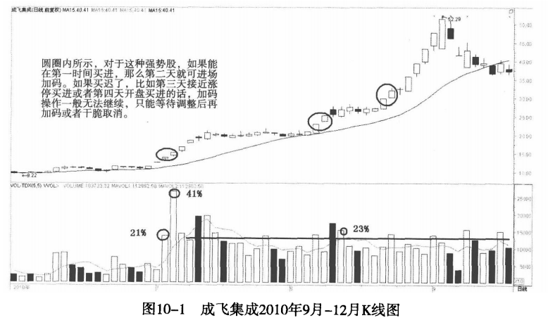 当初次建仓成功,走势符合预期时即可进场加码。趋势确立,利润浮现,就应果断加码,乘胜追击。