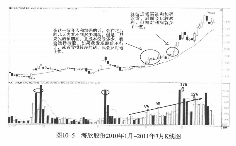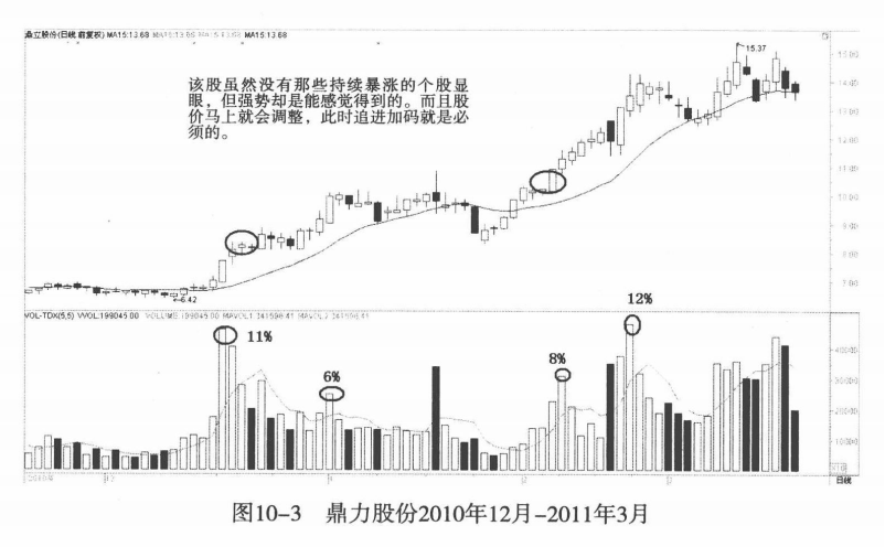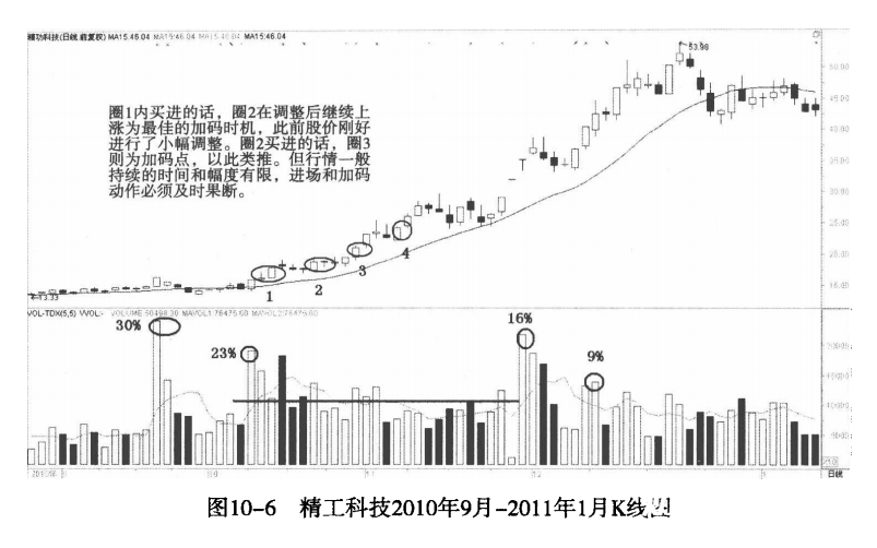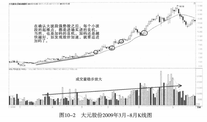 如果小波段强度不够,但大波段的持续性很好,应该在下一个波段起涨点进场加码,如果小波段突然加速走强,应该及时追进加码。