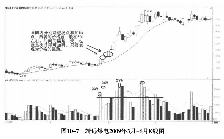 在建仓完成之后,如果又发现了一个非常理想的交易目标,而且买点也不错,此时我们应该立即买进。此后,所剩资金可能只够加码一只股票了,哪只目标股走势强预期高,就加码哪只股。当然,如果是半仓进场的话,可能也没什么多余的资金再加码了。
