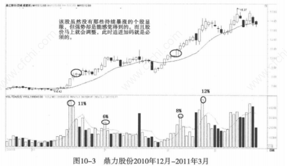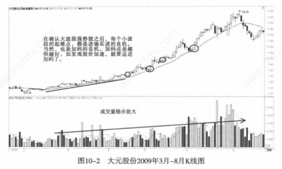 如果小波段强度不够,但大波段的持续性很好,应该在下一个波段起涨点进场加码,如果小波段突然加速走强,应该及时追进加码。