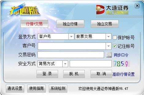 大通证券神通版由深圳市财富趋势科技有限责任公司开发,集各类证券分析软件之所长,是一套Win2000/XP/Vista/Win7平台上进行各种证券分析的系统,功能强大、操作方便、界面友好,支持互联网接收实时行情,适合各类证券投资者使用。