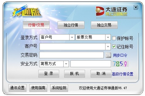 大通证券神通版由深圳市财富趋势科技有限责任公司开发,集各类证券分析软件之所长,是一套Win2000/XP/Vista/Win7平台上进行各种证券分析的系统,功能强大、操作方便、界面友好,支持互联网接收实时行情,适合各类证券投资者使用。