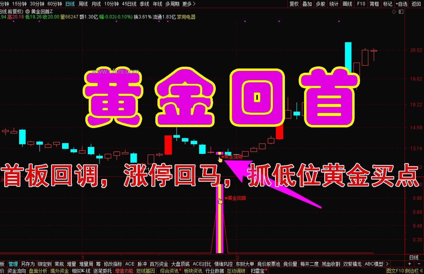 推荐理由:一个久经考验的成交量,量能指标。辅助解决卖点问题,减少买对牛股拿不住的问题。能量不退,黄色不消失,可以继续持股。经历实战,值得推荐