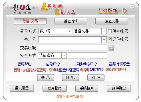 东海证券超强版新一代功能强大,操作简便,具有全方位扩展性,技术分析功能强。详细说明请查看软件内的“帮助”.龙点金东海理财客户端支持新*三板的行情,支持互联网接收实时行情,适合各类证券投资者使用。